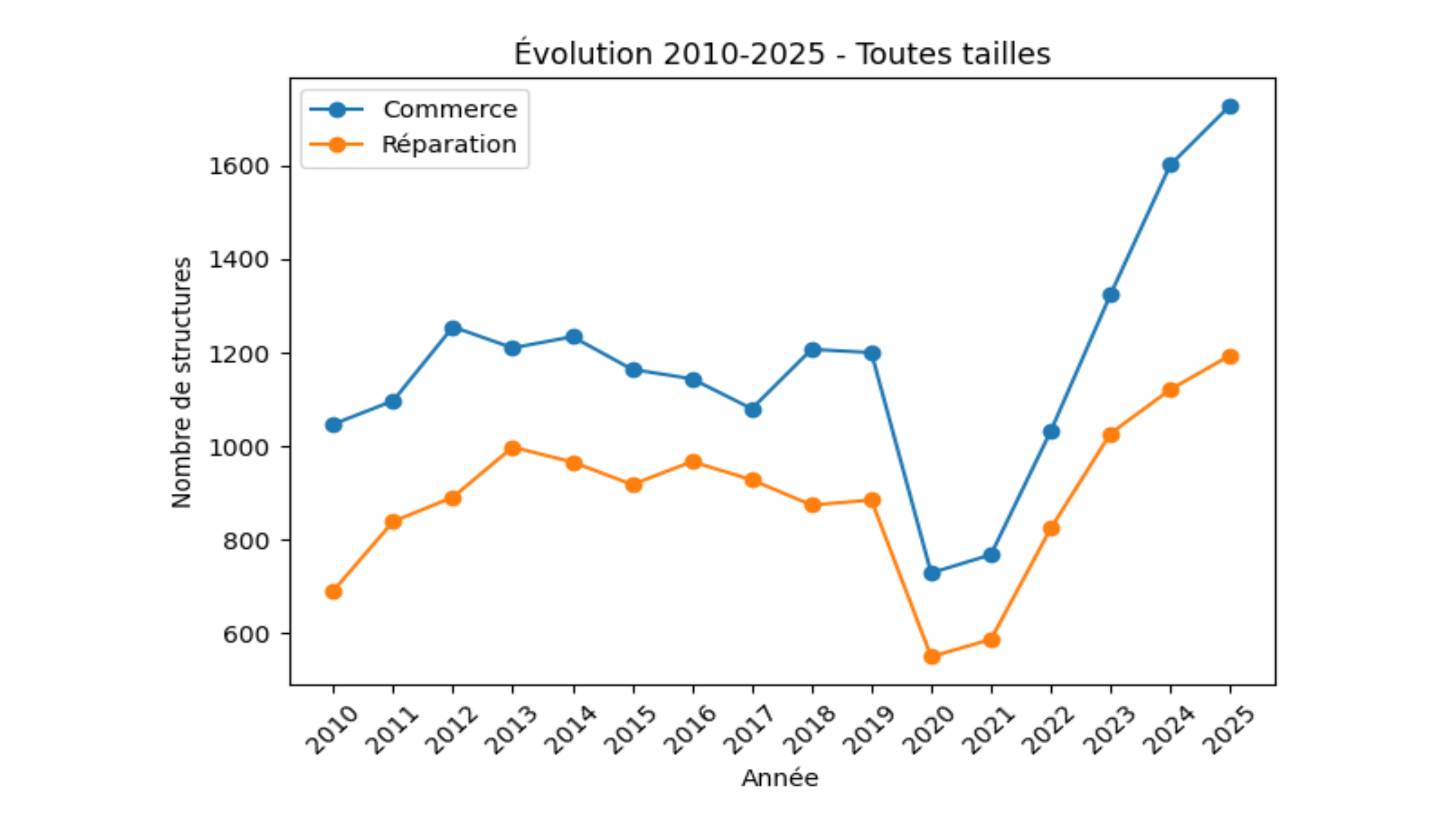 Après les années atypiques post-covid , la situation des PME et TPE revient progressivement vers un rythme plus habituel de procédures. En 2025, 68 650 défaillances ont été enregistrées tous secteurs confondus (+2 % par rapport à 2024). Un niveau élevé, mais désormais stabilisé. Cependant, ce tableau sombre est en partie contrebalancé par une dynamique de création d’entreprises particulièrement soutenue. L’année 2025 enregistre un record avec 1,2 million de nouvelles structures créées (+5 % par rapport à 2024), soit un doublement en dix ans. Les micro-entreprises restent, logiquement, les plus nombreuses à se créer (+6 % sur un an). Le commerce figure parmi les secteurs les plus dynamiques, avec une progression des créations de +12 %.