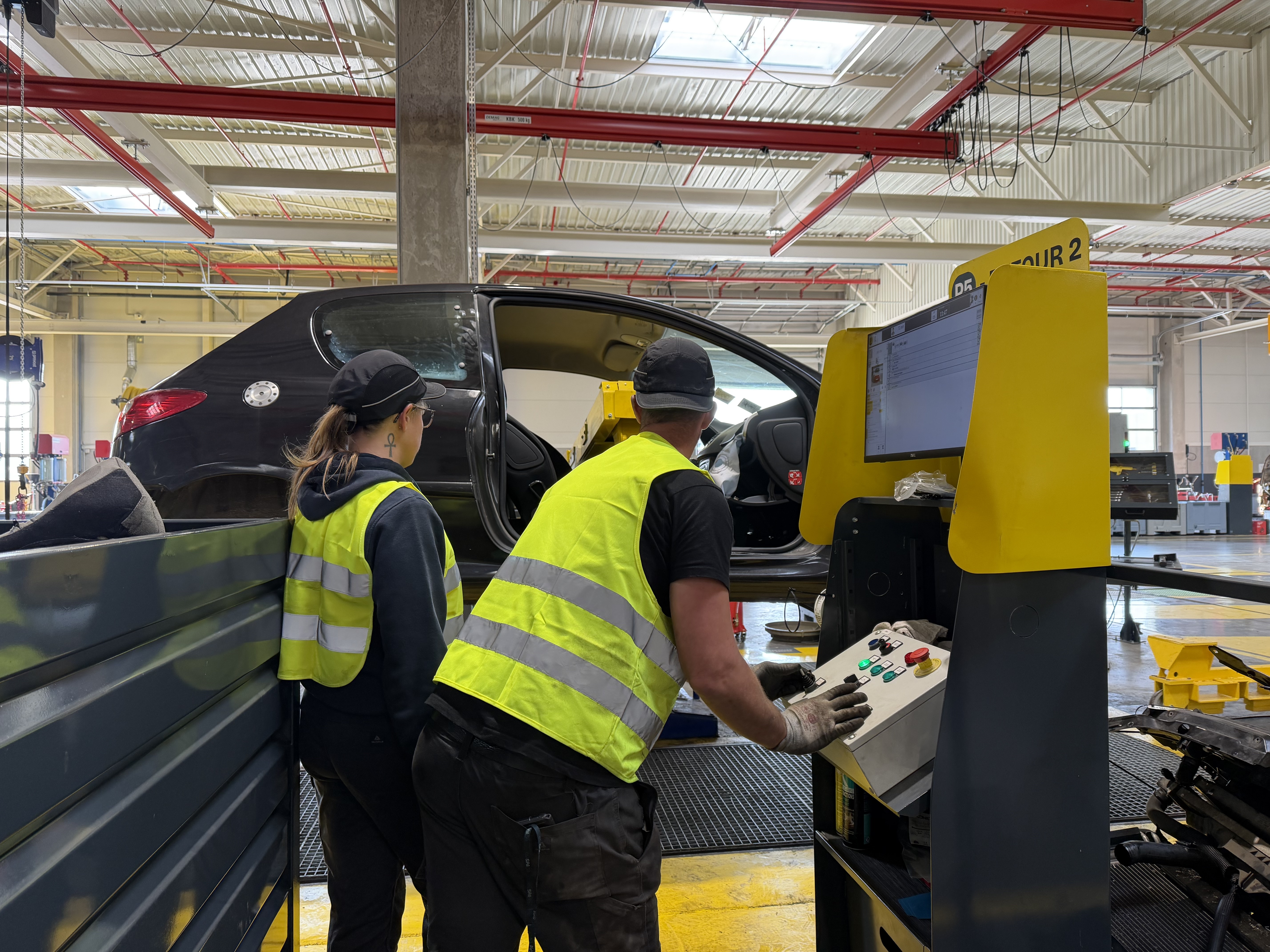 Les véhicules électriques sont tenus à l’écart du bâtiment principal afin d’éviter les risques de propagation en cas d’incendie. Dans cet atelier de 900 m2, on effectue la dépose des packs de batteries de véhicule, l’ouverture des packs, le prélèvement des modules et leur décharge, mais aussi le stockage des batteries.